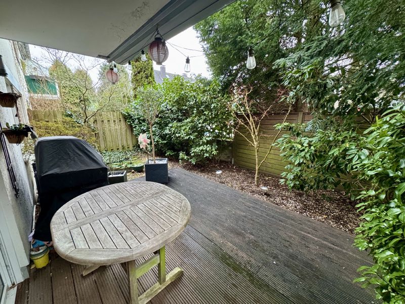 Ein Highlight der Wohnung ist die einladende Terrasse mit einem kleinen Gartenanteil, die Ihnen den perfekten Ort für entspannte Stunden im Freien bietet. Genießen Sie die Ruhe und den Blick in Ihren kleinen, uneinsehbaren Garten, wo Sie ungestört die Natur genießen können. Die Gartenterrasse ist ideal für entspannte Nachmittage oder gesellige Grillabende mit Freunden.
