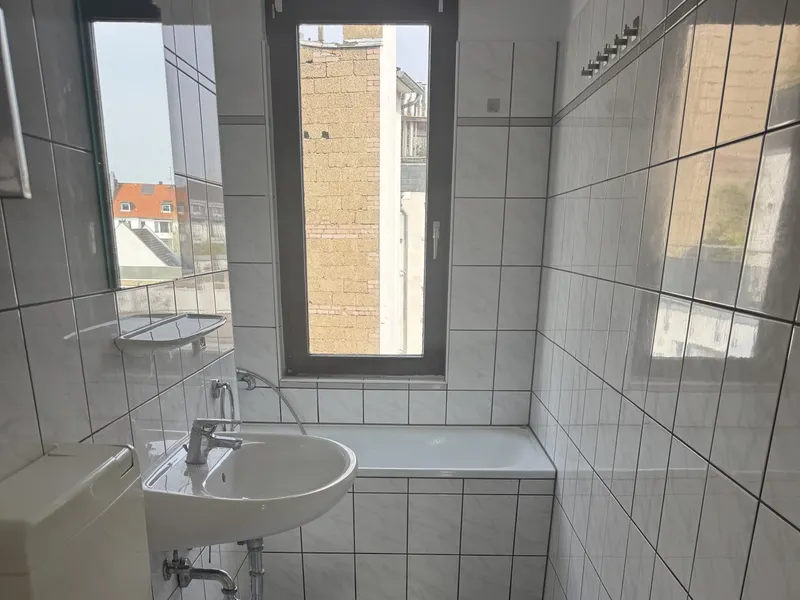 Das Badezimmer ist mit einer komfortablen Badewanne ausgestattet und bietet eine angenehme Wohlfühlatmosphäre. Die Wohnung überzeugt durch eine durchdachte Raumaufteilung und ein modernes Ambiente.
