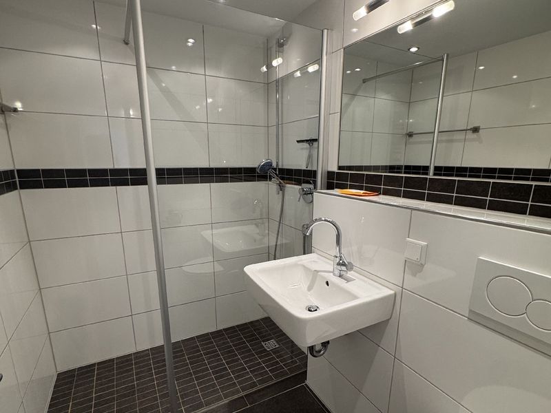 Das Schlafzimmer ist ein Rückzugsort der Ruhe, in dem Sie nach einem langen Tag entspannen können. Beide Zimmer profitieren von großen Fenstern, die viel Tageslicht hereinlassen und eine angenehme Wohnatmosphäre schaffen.